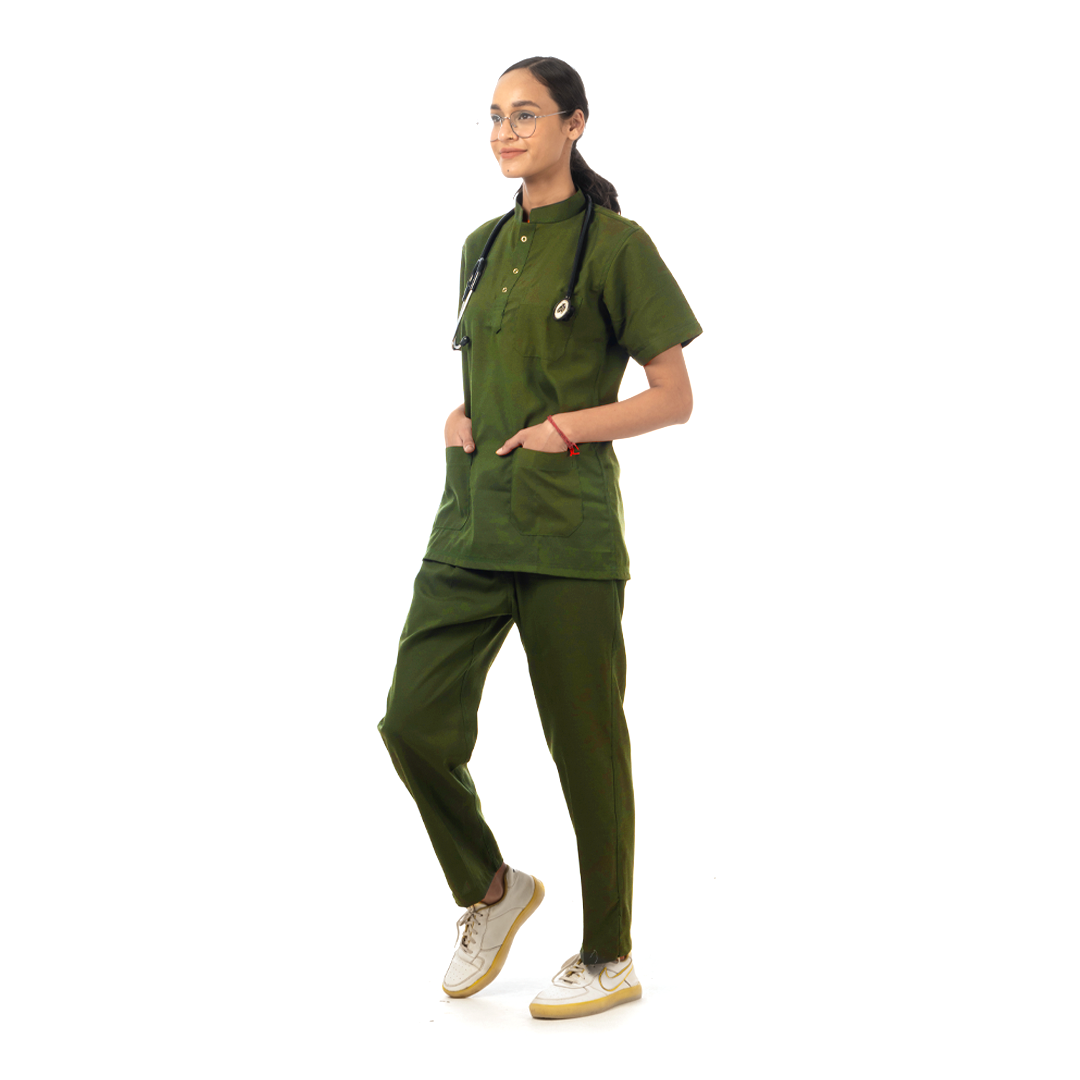 Premium Scrub for Women | Round Neck | Moss Green